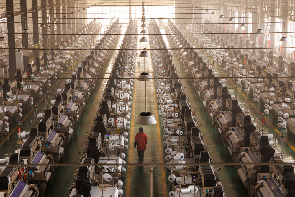 2026年4月17日,在贵州省毕节高新技术产业开发区一家纺织企业内,机器开足马力全力生产。新华社记者 刘续 摄