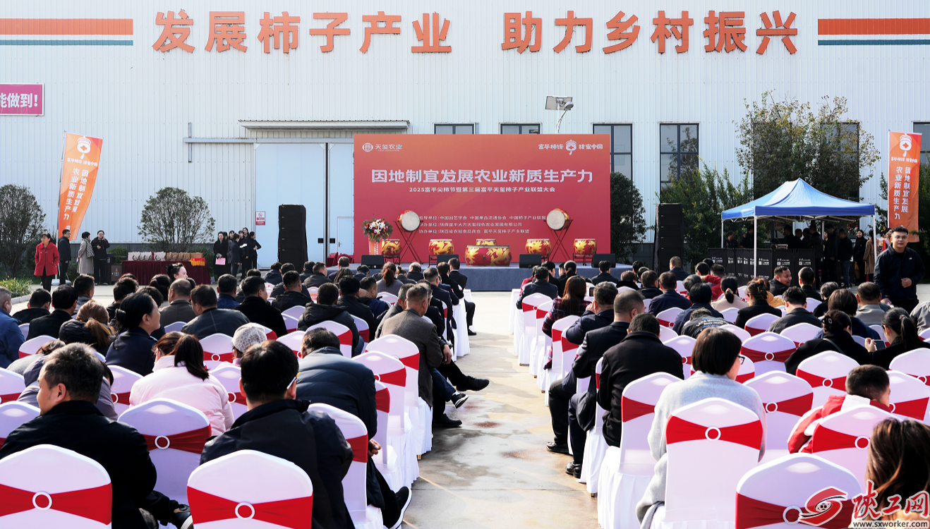 陕工网讯 10月26日上午,“因地制宜发展农业新质生产力 2025富平尖柿节暨第三届富平天玺柿子产业联盟大会”在天玺柿子小镇开幕。相关专家、富平县相关领导以及来自全国各地的柿子产业专家、经销商代表以及富平天玺柿子产业联盟成员等200余人出席本次活动,共话中国柿子产业现代化发展之路。