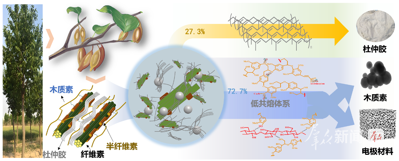 据了解,天然橡胶是国民经济不可或缺的关键物资。然而,我国天然橡胶自给率长期低于20%,严重依赖进口热带地区生产的三叶橡胶。杜仲作为我国特有的木本植物,其含有的杜仲胶被誉为最具潜力的第二大胶源。但传统提取技术不仅效率低下,更忽视了占比超过80%的木质纤维素等非胶组分,造成了巨大的资源浪费。