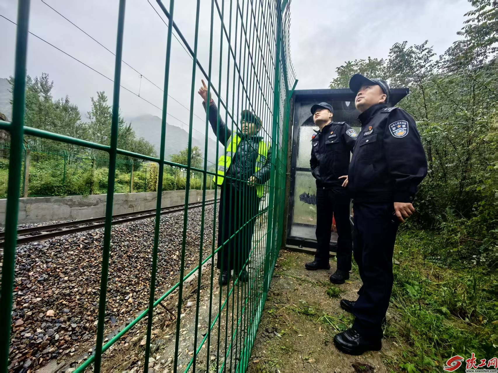 在铁路秦岭隧道边,民警督导铁路工务部门强化线路治安巡控,及时发现线路治安隐患并补强整改,注重巡控汛期线路两侧山体形态,坚决防止因各类自然灾害引起线路治安问题发生。
