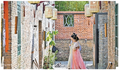 江西景德镇,游客在陶阳里历史文化街区游览。新华社记者 刘金海摄