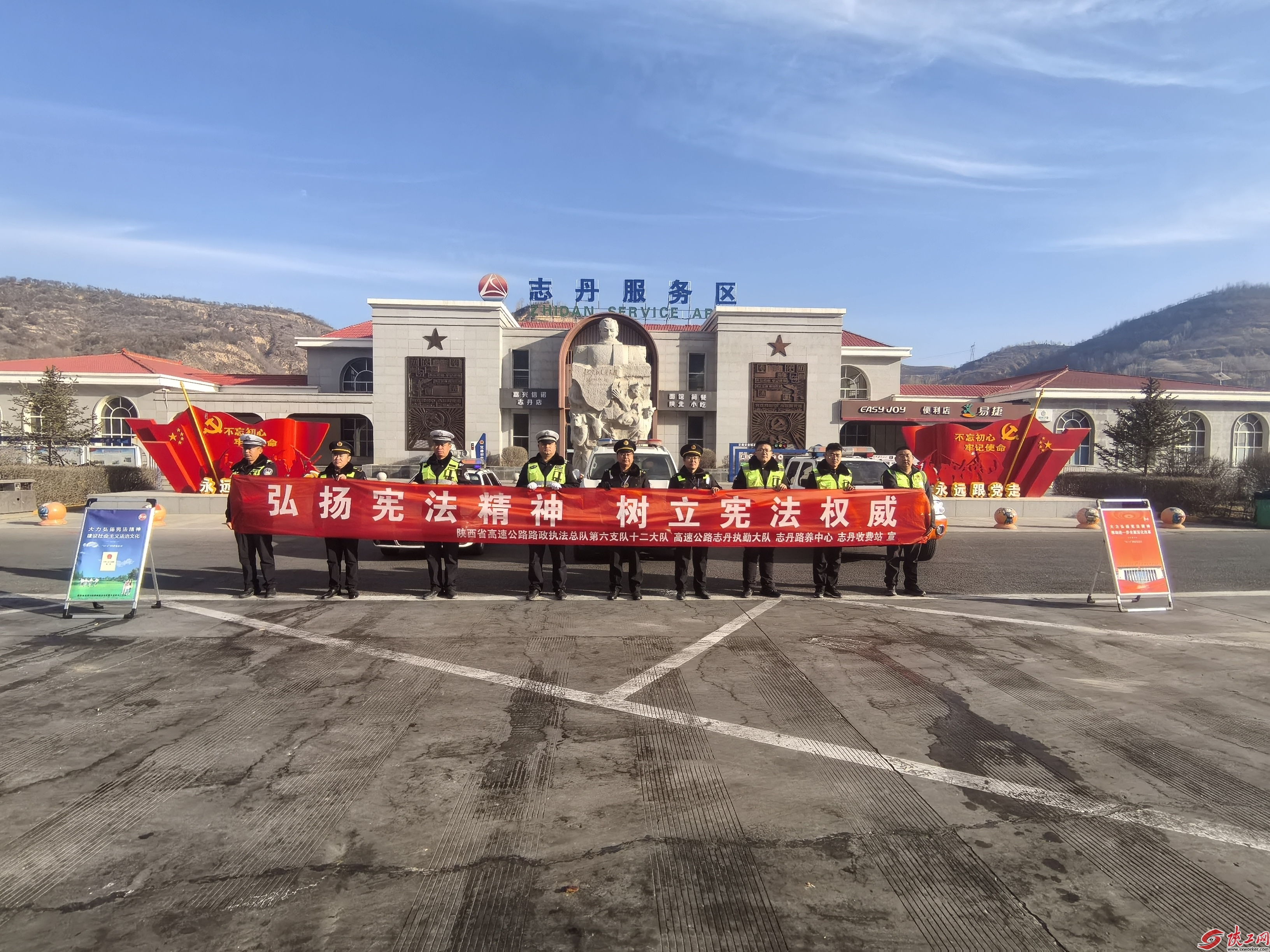 陕工网讯 为深入学习宪法精神,增强全体执法人员宪法意识和法治观念,省路政执法总队第六(延安)支队以“宪法宣传周”为契机,组织各大队扎实开展系列宪法宣传活动。