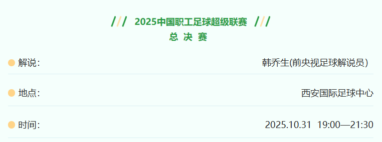 10月24日,全国三个赛区的半决赛已经顺利结束。10月26日,大连、西安、武汉赛区名次排位全部揭晓。10月31日,2025中国职工足球超级联赛总决赛将在西安国际足球中心打响,闭幕式及颁奖典礼精彩开启。