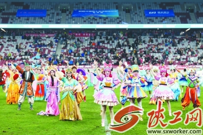 闭幕式以“历史与拼搏交响、文化与体育共生”为核心,《秦鼓声声》击打出磅礴气势,《诗从长安来》以曼妙歌舞勾勒足球与千年文脉的相遇;《咱们工人有力量》的经典旋律,将全场氛围推向高潮。
