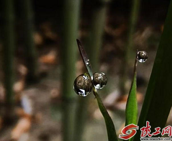 晶莹的露珠,映衬着荷叶、青竹,既不着意隐藏,也不刻意彰显。正如廉洁,应出自本心,心清若露,意静自廉,祛除一切干扰,泰然自若,不惧风雨。