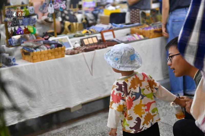 新二手市集内琳琅满目的商品吸引了孩子的注意
