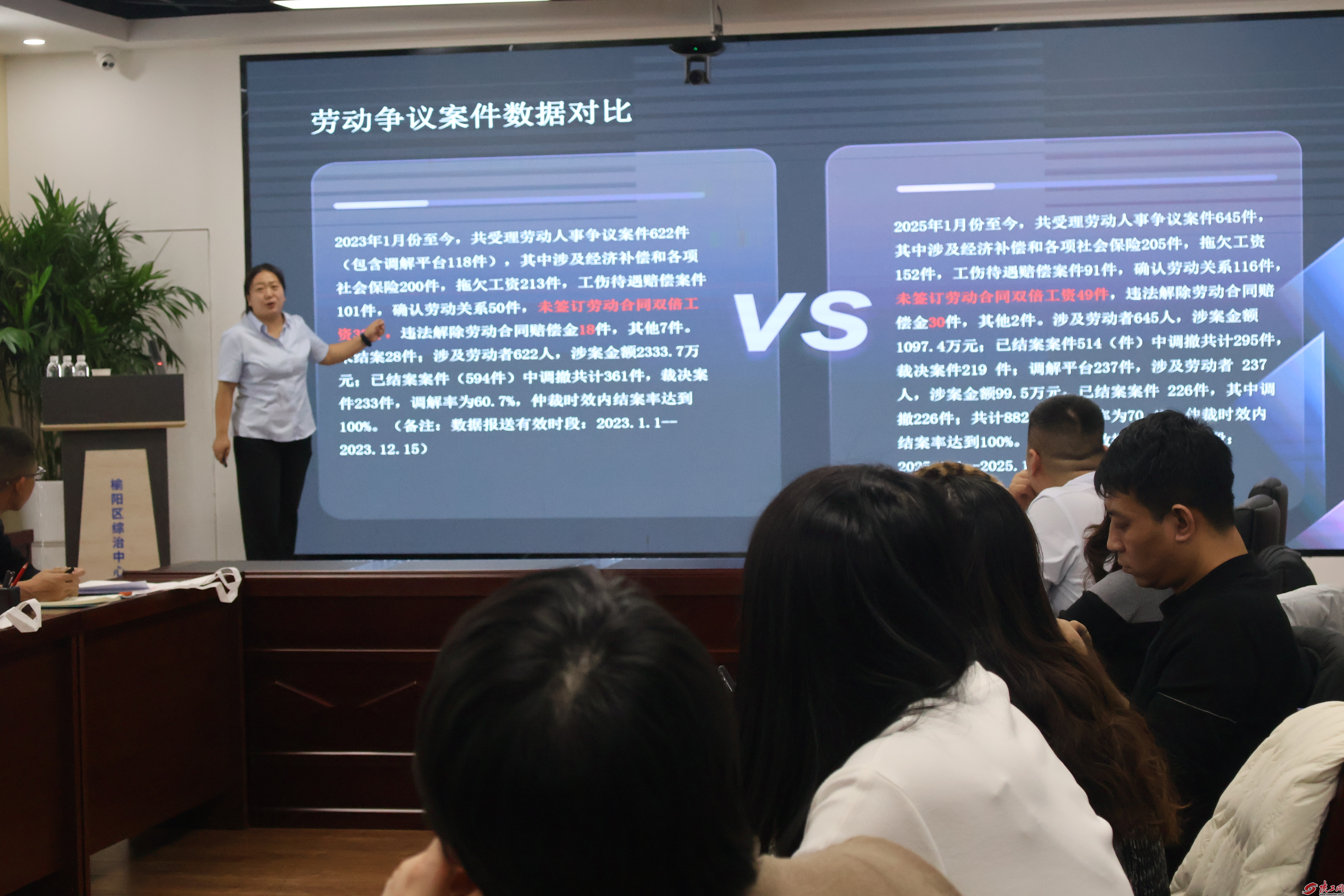 本次培训以“中小微企业用工全流程风险防范与劳动法律法规”为主题,内容覆盖劳动争议态势分析、招聘录用规范、劳动合同管理、规章制度制定、解约补偿计算、仲裁流程解读及典型案例剖析七大板块,兼具专业性与实操性。