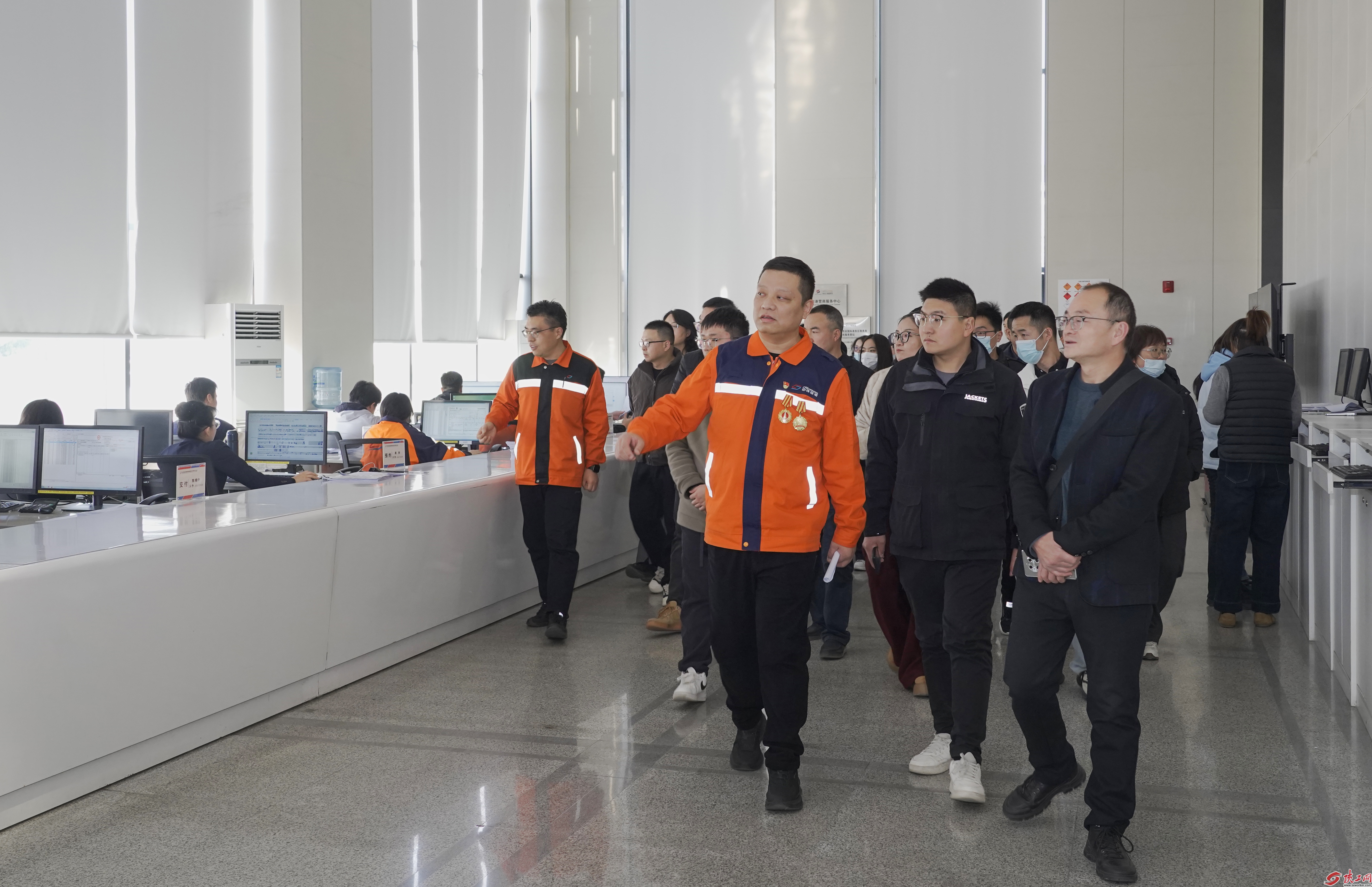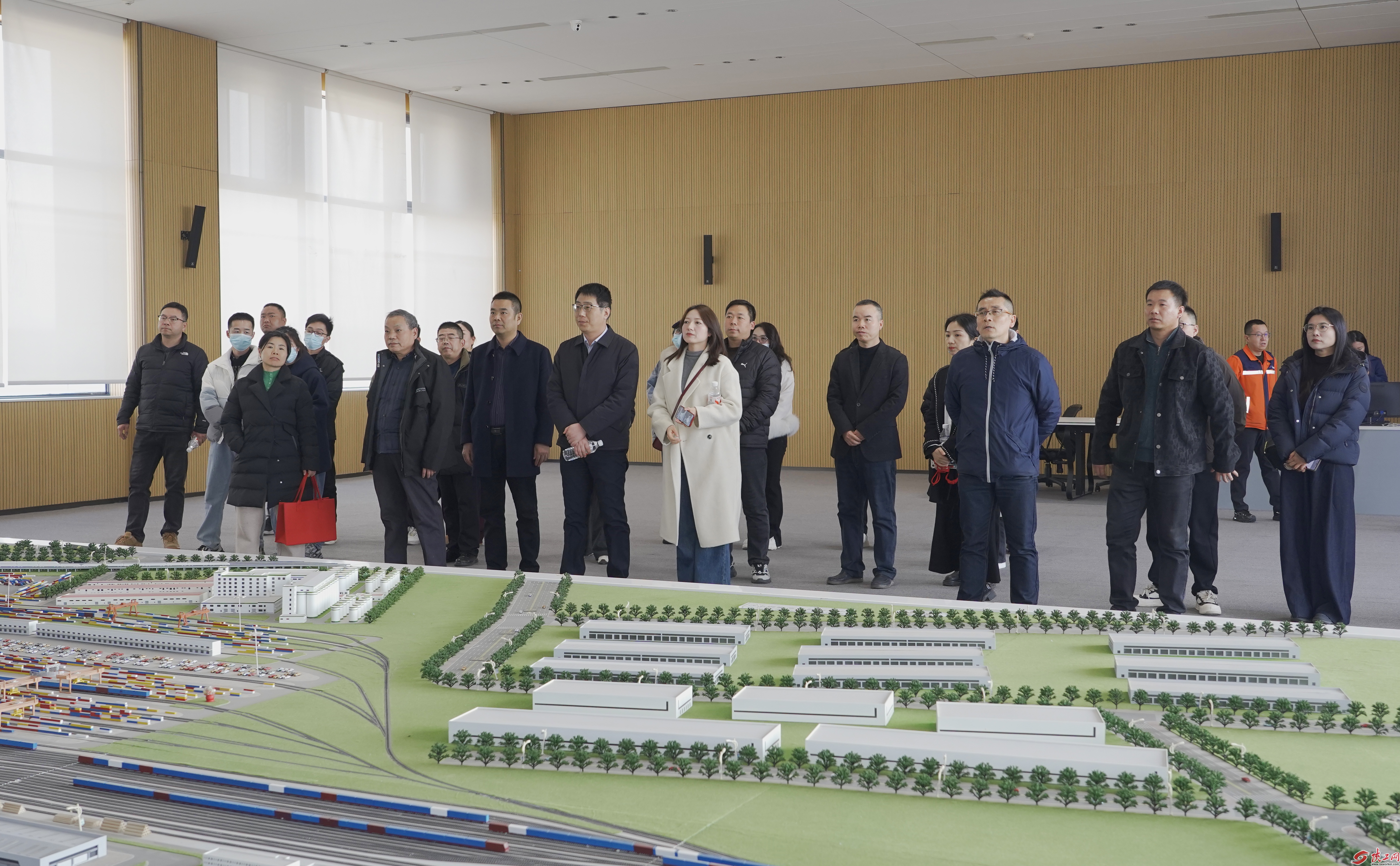 职工代表们参观中欧班列西安集结中心综合营业大厅。