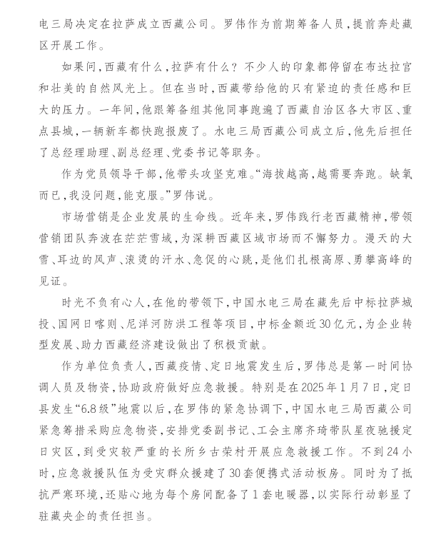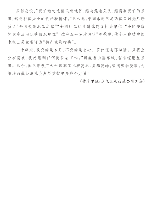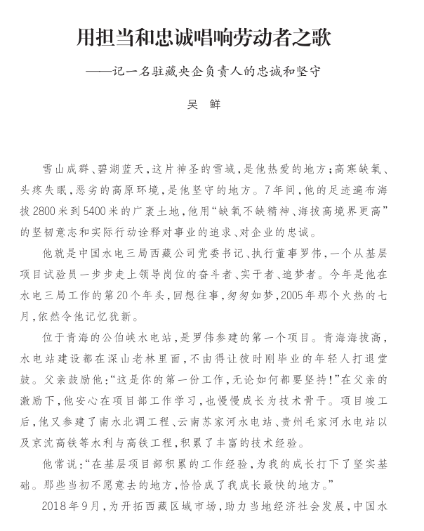 征文|用担当和忠诚唱响劳动者之歌 ——记一名驻藏央企负责人的忠诚和坚守