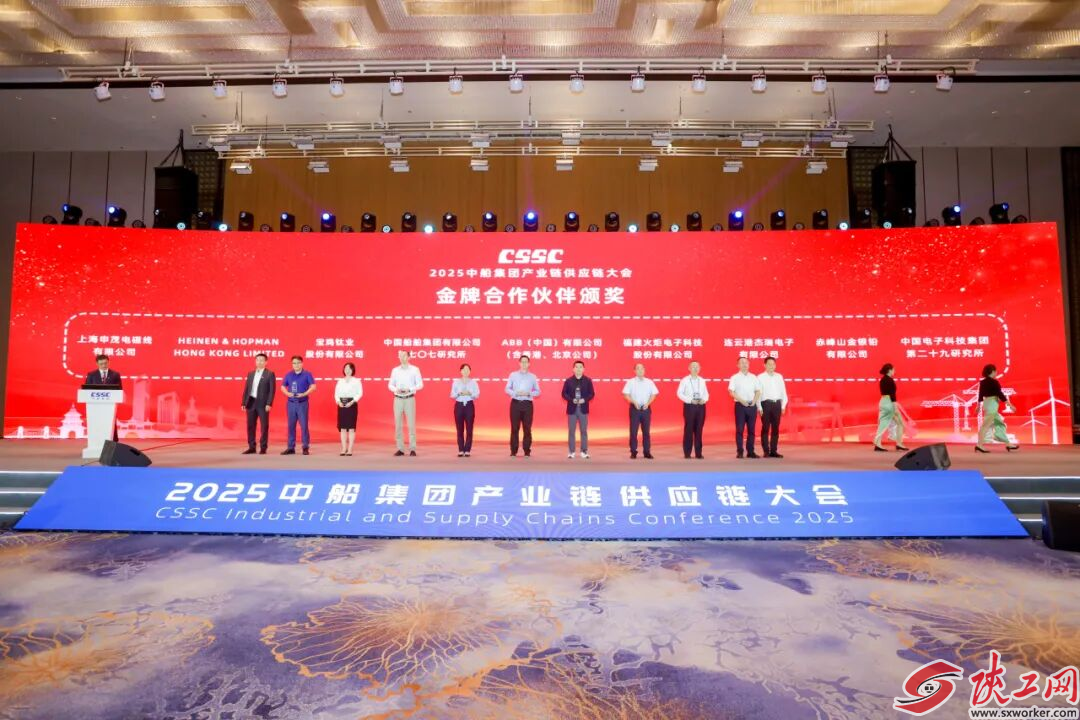 陕工网讯 9月19日,中国船舶集团有限公司(以下简称中船集团)举办了以“扬帆聚链 智领深蓝”为主题的产业链供应链大会。作为钛及钛合金材料领域的代表,宝钛股份在大会上荣获2024年度“金牌合作伙伴”称号。宝钛股份总经理张海龙带队出席会议并领奖。