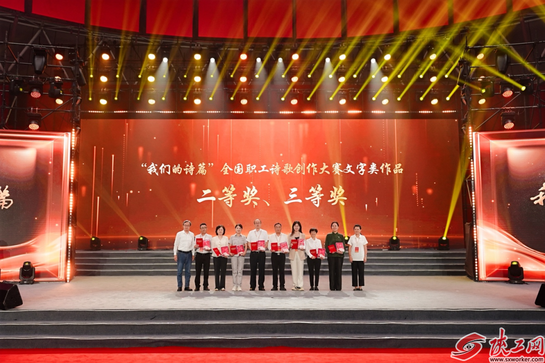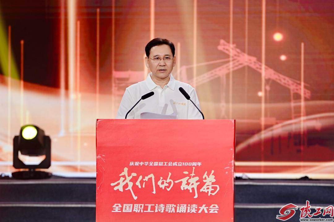 陕工网讯 9月27日—28日,庆祝中华全国总工会成立100周年“我们的诗篇”全国职工诗歌诵读大会在四川宜宾举办。诵读活动以“歌・劳动华章”“咏・建设伟业”“颂・创梦宏图”为主要篇章,通过诗歌诵读、情景演绎、创作访谈、非遗舞蹈、合唱表演等多种艺术形式,深情回顾中国工运百年奋斗历程