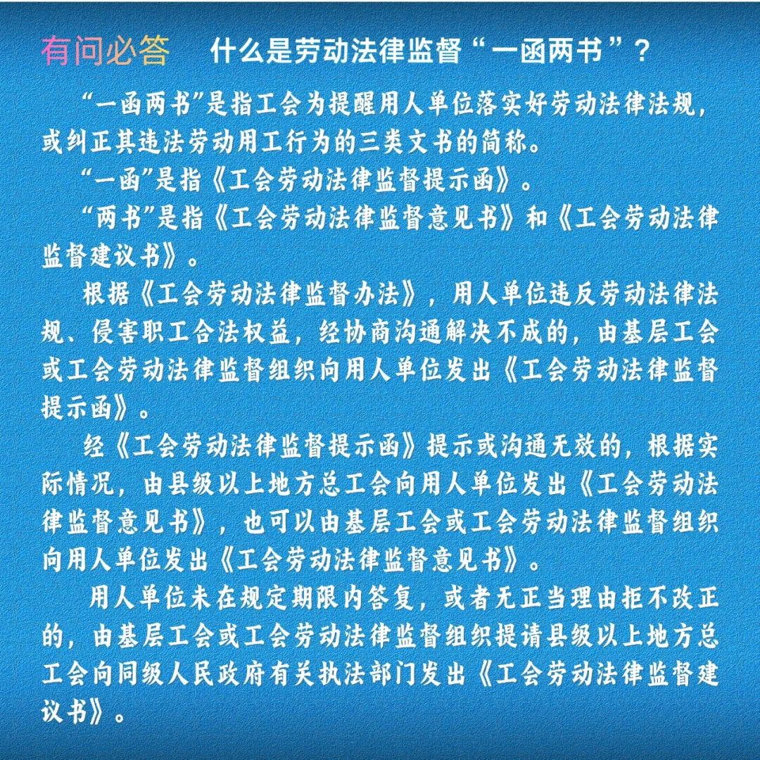 为深入学习贯彻习近平法治思想,贯彻落实党的二十届四中全会精神和中央全面依法治国工作会议精神,充分发挥典型案例的示范、指导和引领作用,更好协同协作推进劳动法律监督“一函两书”,全国总工会与最高人民法院、最高人民检察院共同研究筛选了10个劳动法律监督“一函两书”典型案例,供参考借鉴。