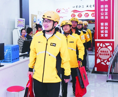 领到中秋爱心礼包的外卖员。