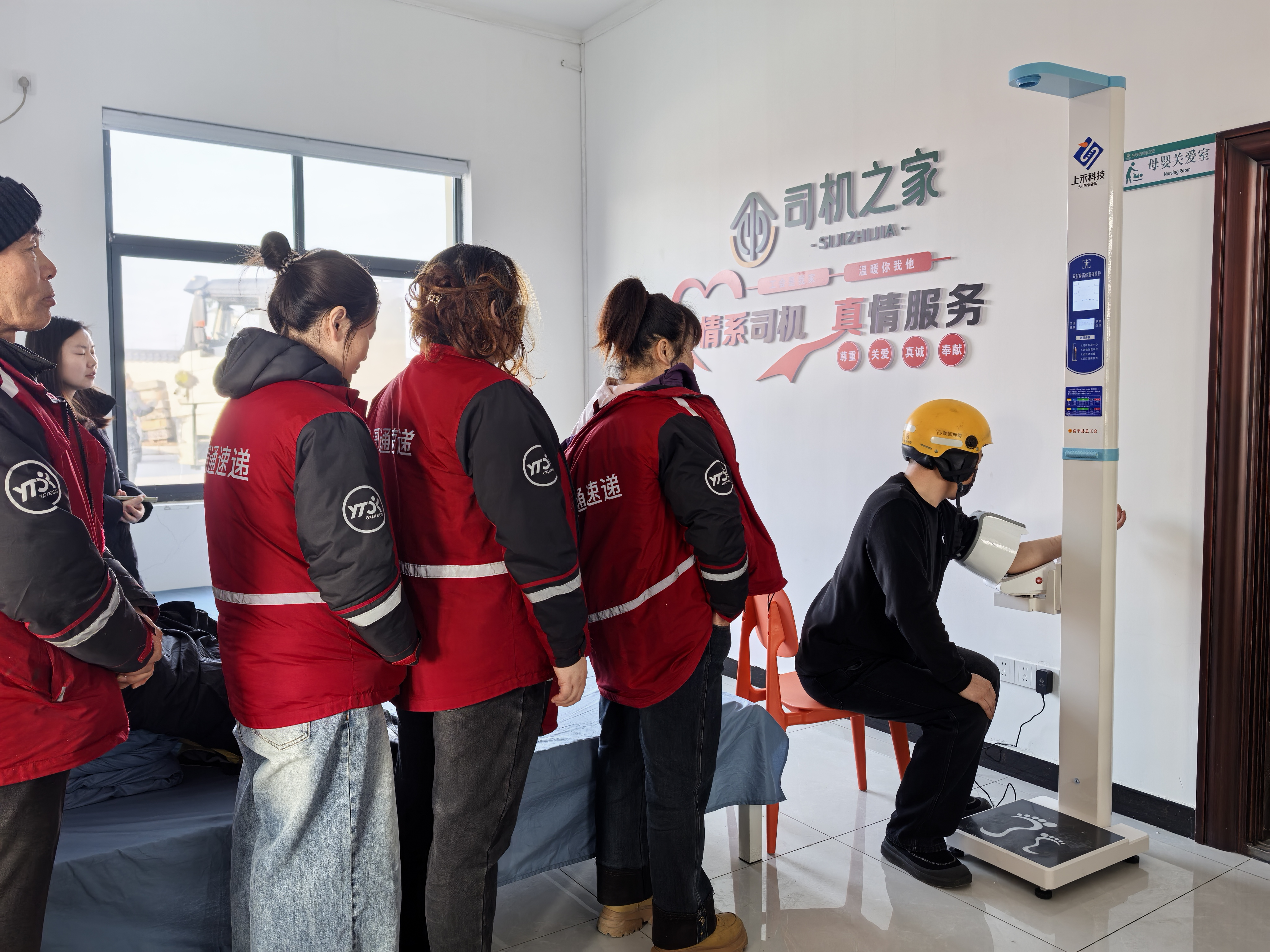 为一线劳动者提供测量血压、身高体重等服务。