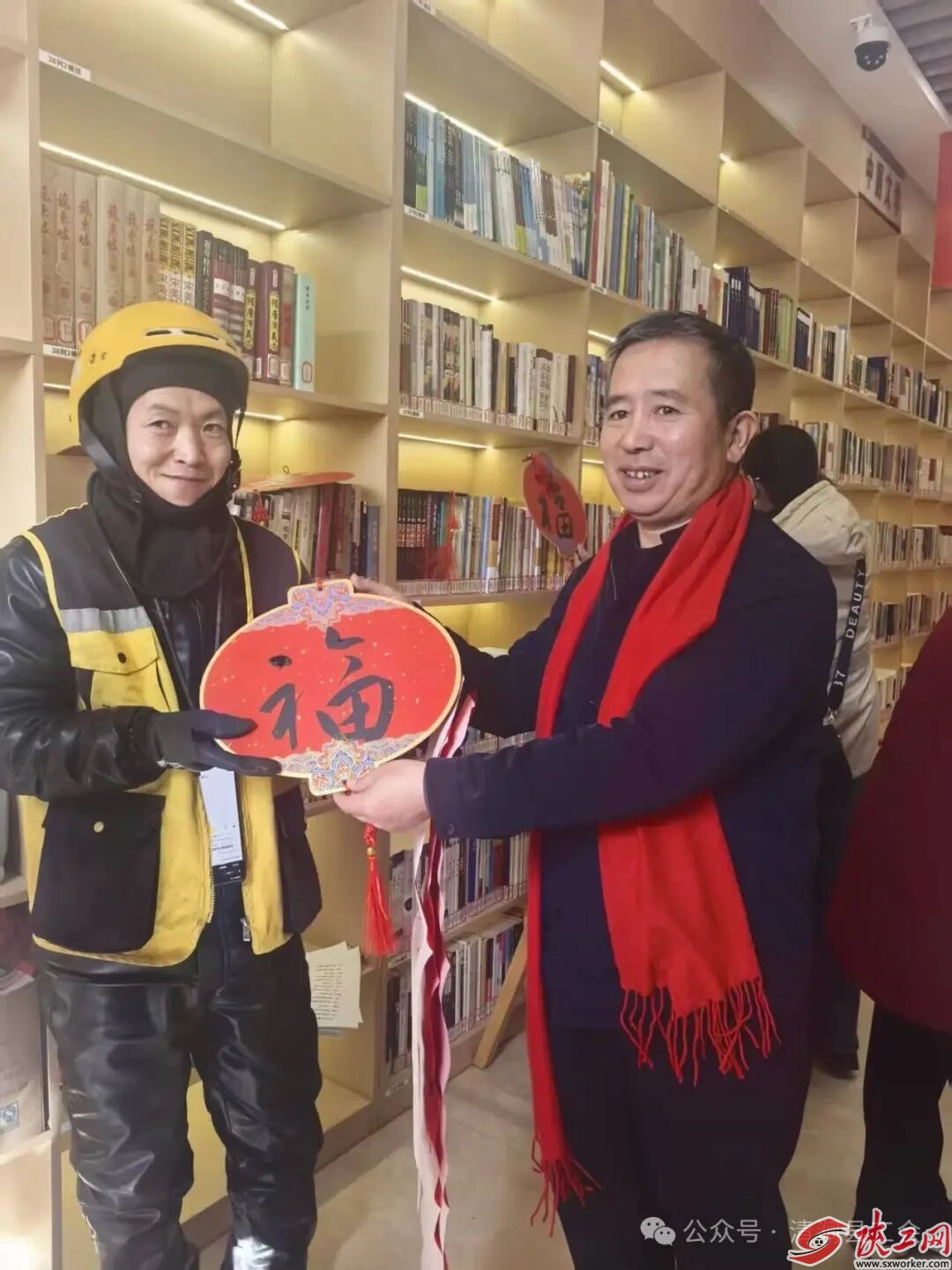 红纸翻飞,墨香四溢。2月10日,农历腊月廿三,清涧县工人文化宫开展了一场以“党建暖‘新’送春联 笔墨载福聚人心”为主题的迎新春送福活动。本次活动由清涧县总工会联合县委社工部、县文联共同主办,将手写的春联与“福”字,送到外卖员、环卫工人等一线劳动者手中,并将温暖传递至城区各个工会服务驿站。