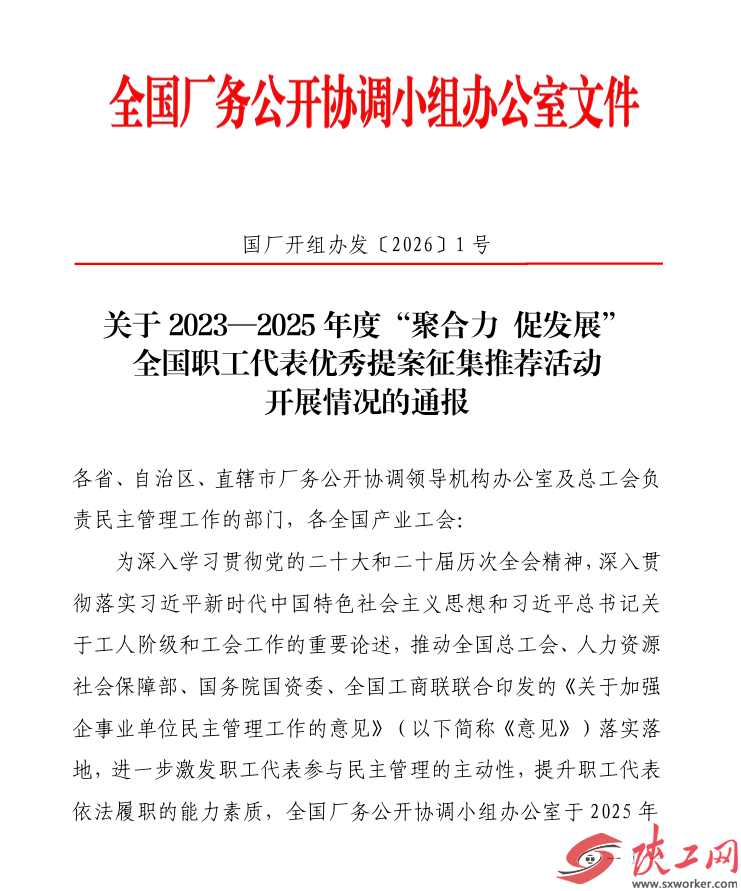 陕工网讯(李佳音)近日,从陕西省总工会传来喜讯,陕煤集团推荐的四项提案在“聚合力 促发展”全国职工代表优秀提案征集推荐活动中成功获得推荐。这一成果不仅彰显了陕煤集团在推动企业民主管理、激发职工创新创造活力方面的显著成效,更是企业与职工携手共进、同谋发展的有力见证。