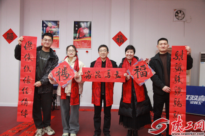 陕工网讯 马蹄踏春至,墨香润人心。2月10日,为喜迎2026年马年新春佳节,丰富职工群众的文化生活,营造浓厚的节日氛围,陕西省交口抽渭灌溉中心工会与团委联合举办“策马扬鞭启征程”主题书法义写新春送祝福活动。中心领导亲临活动现场,给干部职工送上诚挚的祝福。
