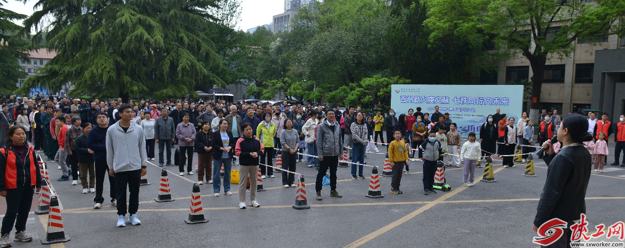 陕工网讯(建工) 4月11日,“百卅薪火赓文脉 七秩同行向未来”西安建筑科技大学教职工春季健步行活动在雁塔校区行政楼前正式启动,该活动由校工会主办、艺术学院分工会承办。校工会常务副主席迟志武、副主席程永阳和全校千余名教职工一同参与此次活动,活动开幕式由艺术学院分工会主席位娜主持。