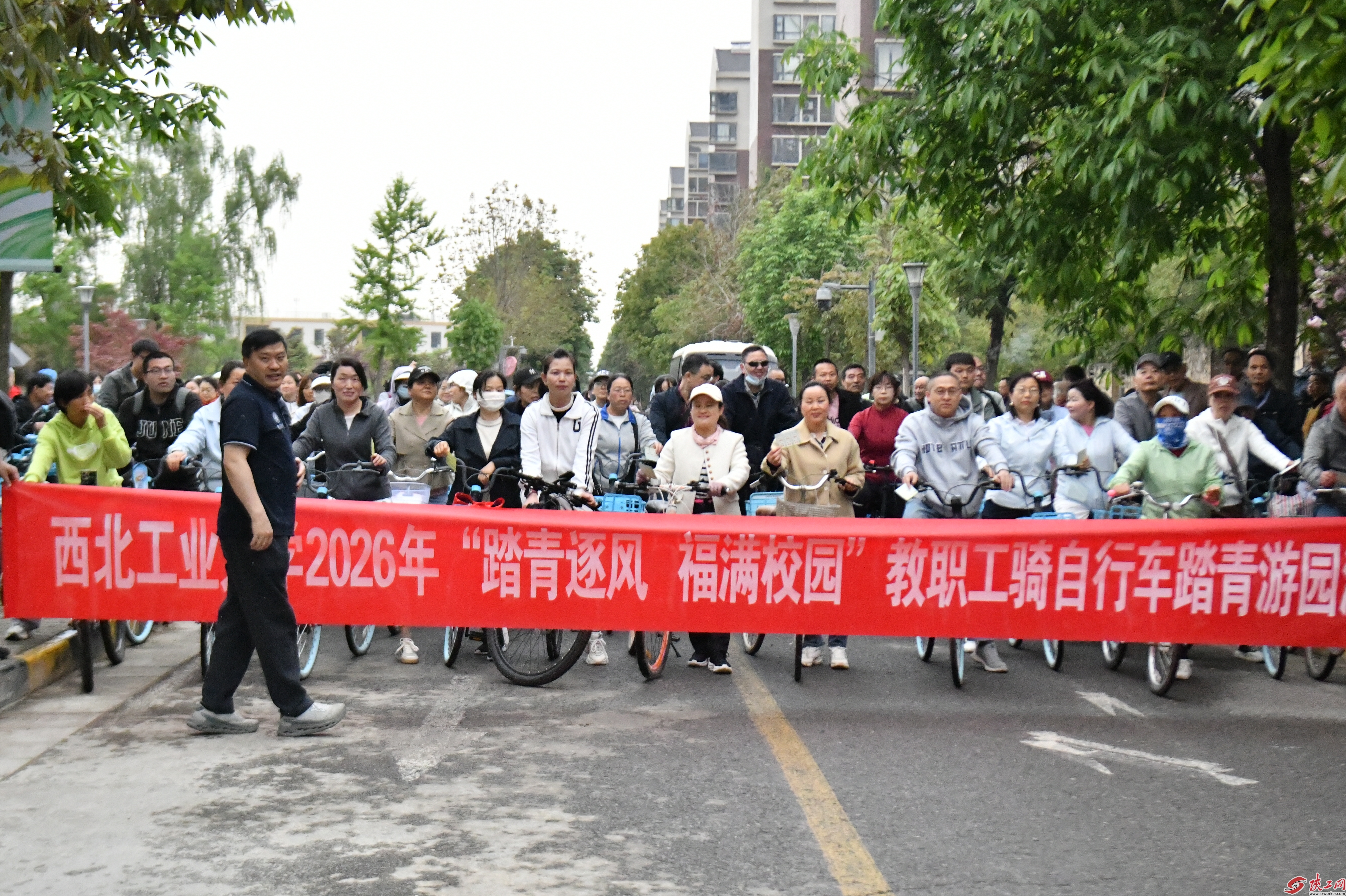 陕工网讯 (文/普晓尼 陈飞 图/秦雪威 秋卫平 曹景源 宗青川)春风拂面,万物竞发。4月11日“踏青逐风 福满校园”西北工业大学2026年教职工自行车踏青游园活动在长安校区家属区欢乐启幕。本次活动吸引了2000余名教职工踊跃报名,加上陪同接福踏青的家属,总参与人数突破3000人,创下活动举办以来的历史新高。
