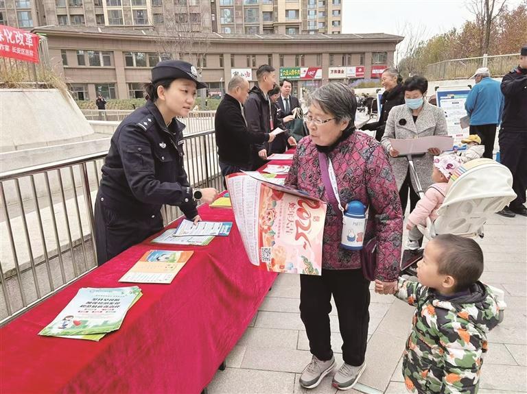社区民警雷婧文宣传反诈知识。