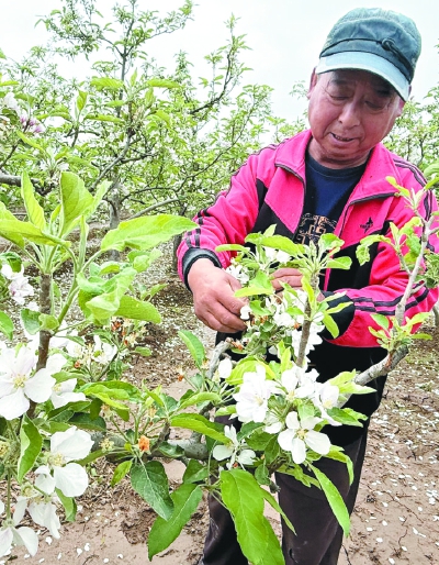 ④4月13日,果农正在梳花。大荔县许庄镇六千余亩苹果花竞相绽放,当地依托科学管理,使苹果亩均收入超万元。