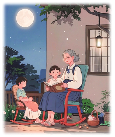 儿子还在哼着《月儿湾》,母亲正耐心地教他认歌词里的生字。我起身走到窗边,窗外的月亮挂在天边,月光洒在楼下的树梢上,像极了外婆腌咸菜时,落在缸沿边的那束光。