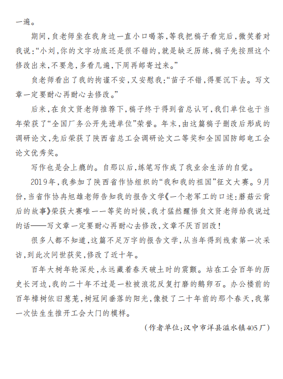 李军 记得2000年夏,我在厂党委宣传部任干事。一天去车间时,一位师傅无意中说道,前几天在《陕西工人报》看到我写的文章了。说来惭愧,之前我在市级报纸上发表过几篇文章,而在《陕西工人报》发表文章是我一