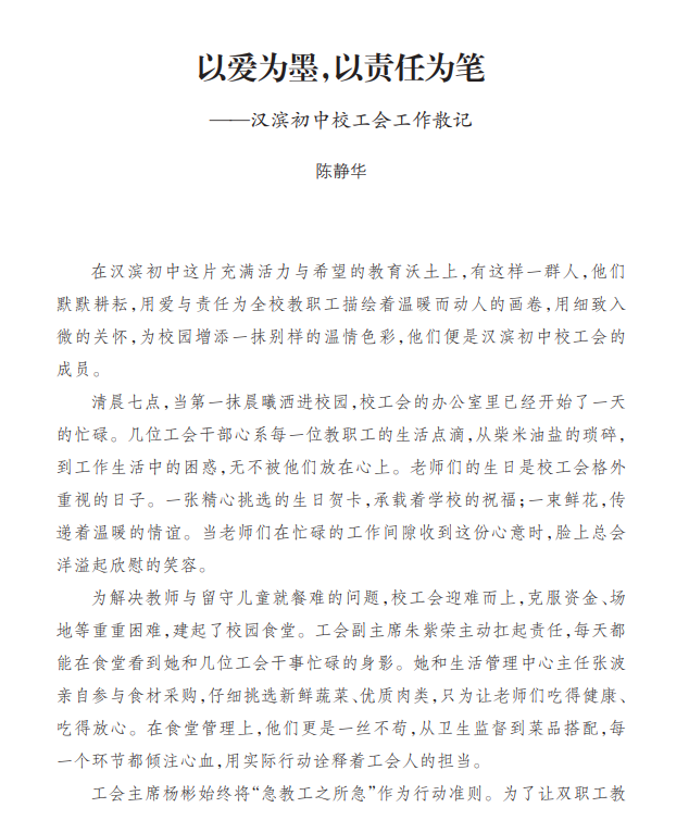 您当前的位置:首页 > 文化 > 文学 征文|以爱为墨,以责任为笔——汉滨初中校工会工作散记