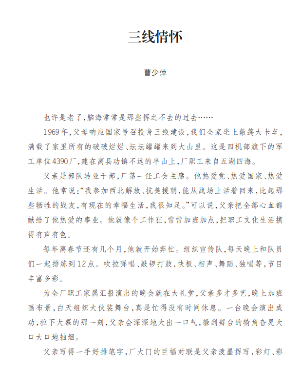 您当前的位置:首页 > 文化 > 文学 征文|三线情怀