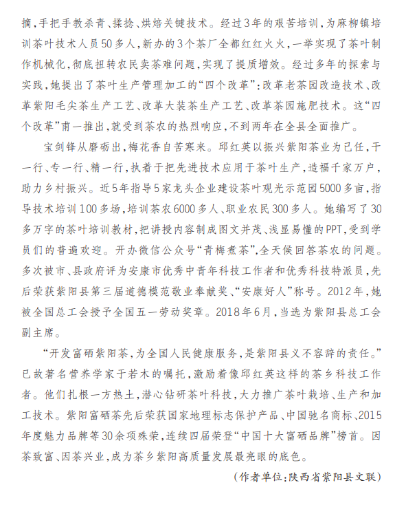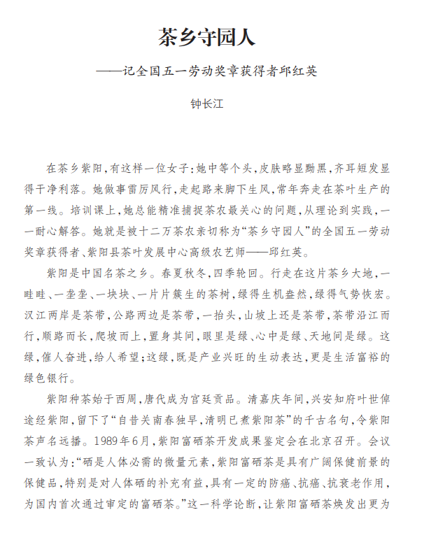 您当前的位置:首页 > 文化 > 文学 征文|茶乡守园人 ——记全国五一劳动奖章获得者邱红英
