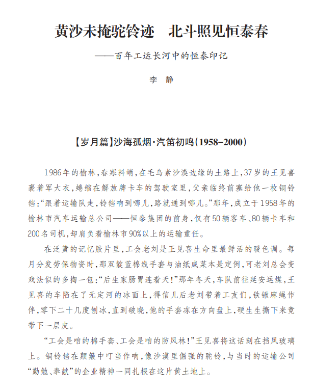 您当前的位置:首页 > 文化 > 文学 征文|黄沙未掩驼铃迹 北斗照见恒泰春——百年工运长河中的恒泰印记