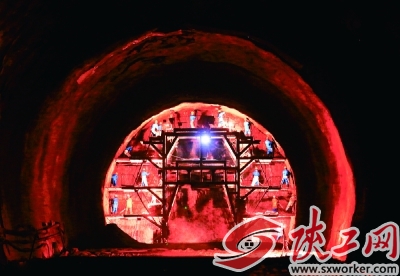 2016年5月,京沈高铁北台子隧道掘进施工现场。