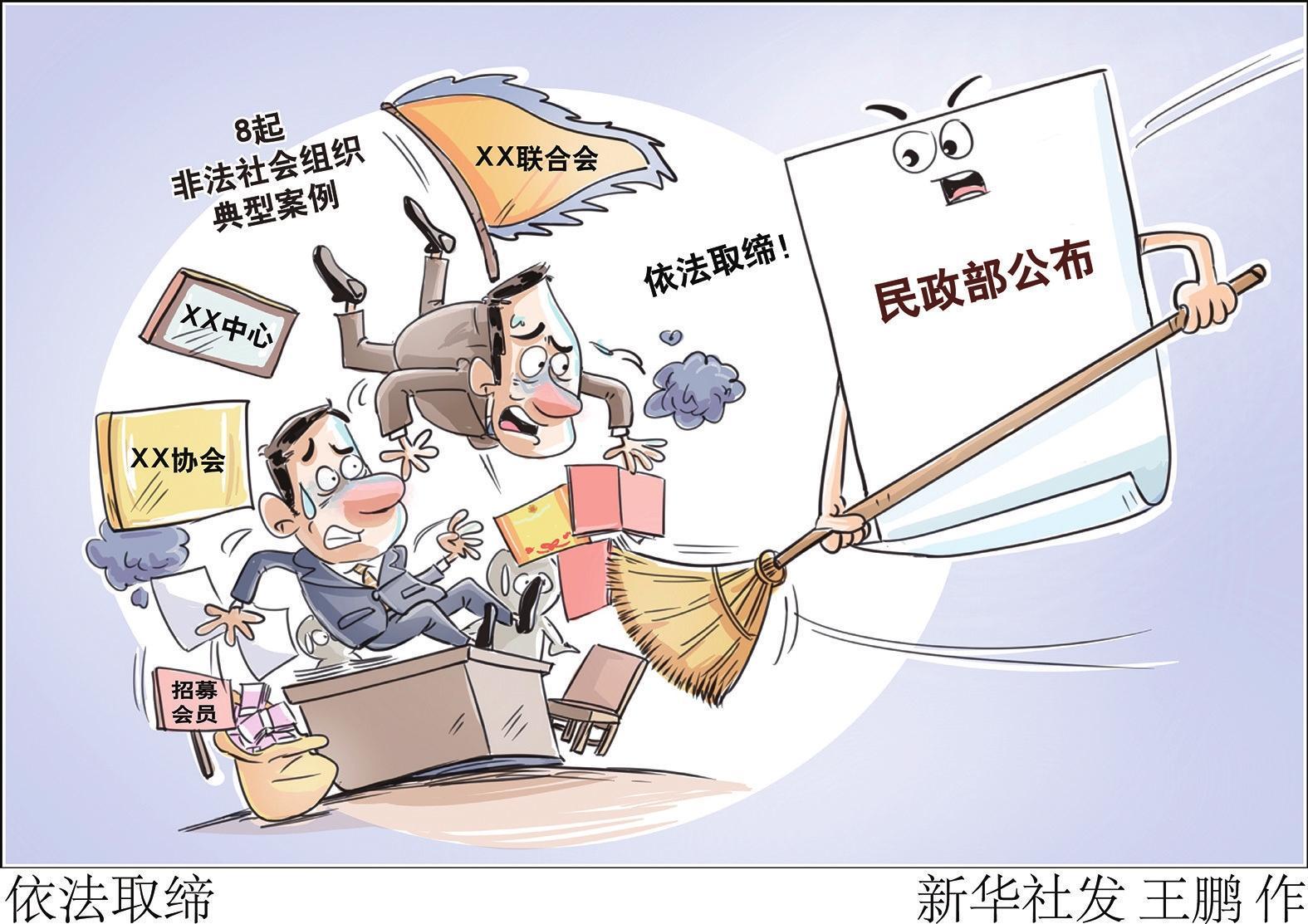 新华社北京9月25日电(记者 朱高祥)民政部25日公布了地方民政部门依法查处的8起非法社会组织典型案例。这些非法社会组织未经登记,擅自以社会团体名义或民办非企业单位名义进行活动,有的扰乱市场管理秩序,有的造成不良社会影响,均被依法取缔。