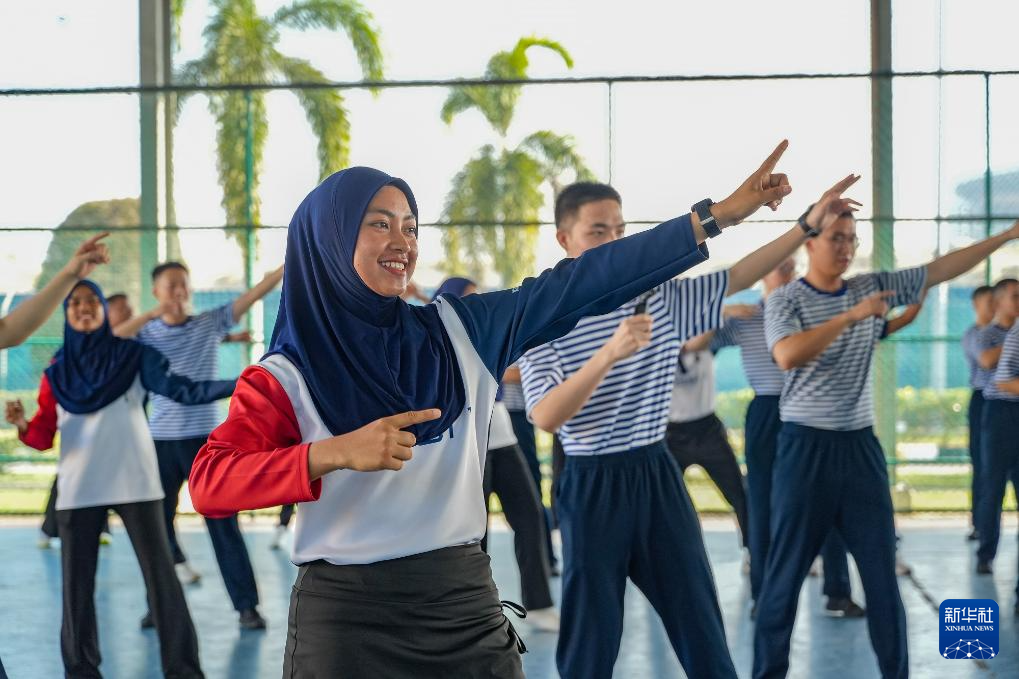 11月30日,在马来西亚巴生,中国海军989编队组织官兵与马方皇家海军学院官兵开展体育交流。