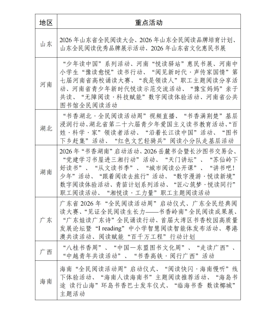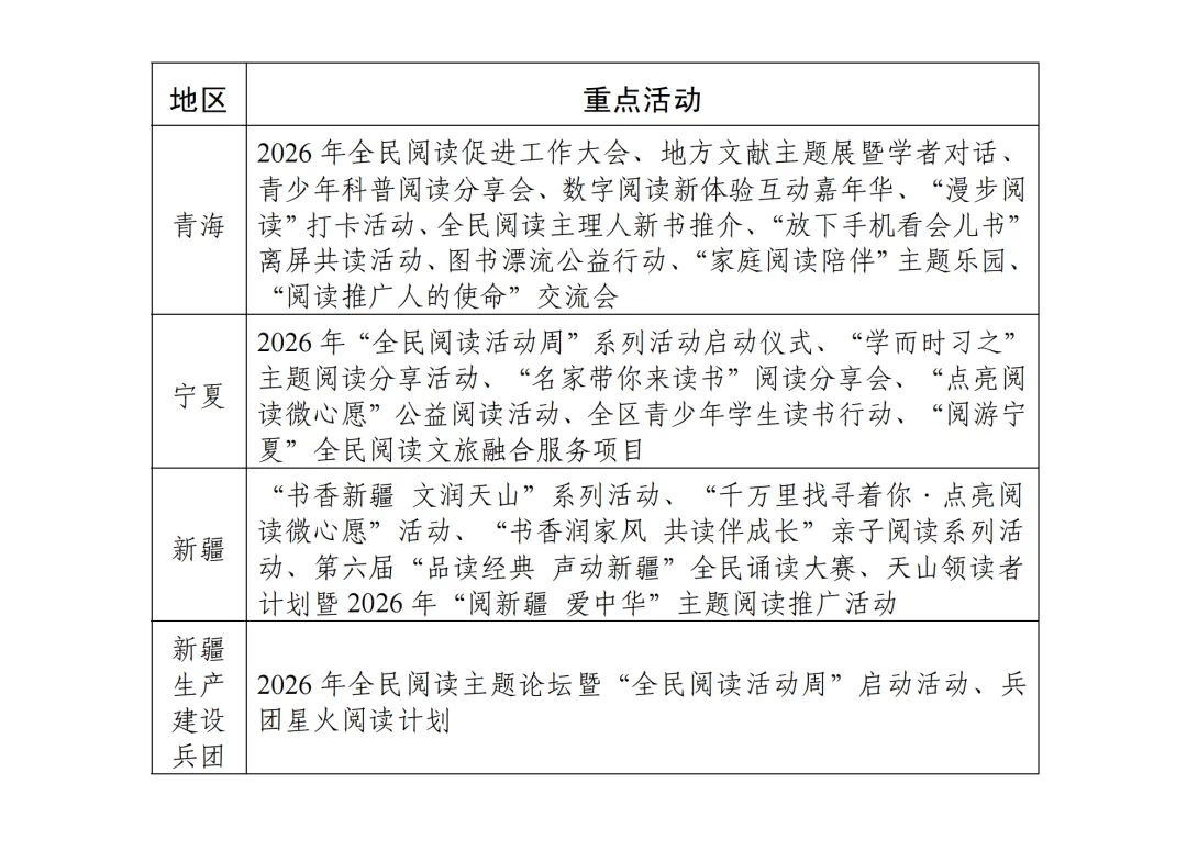 附件:2026年“全民阅读活动周”各地区重点活动