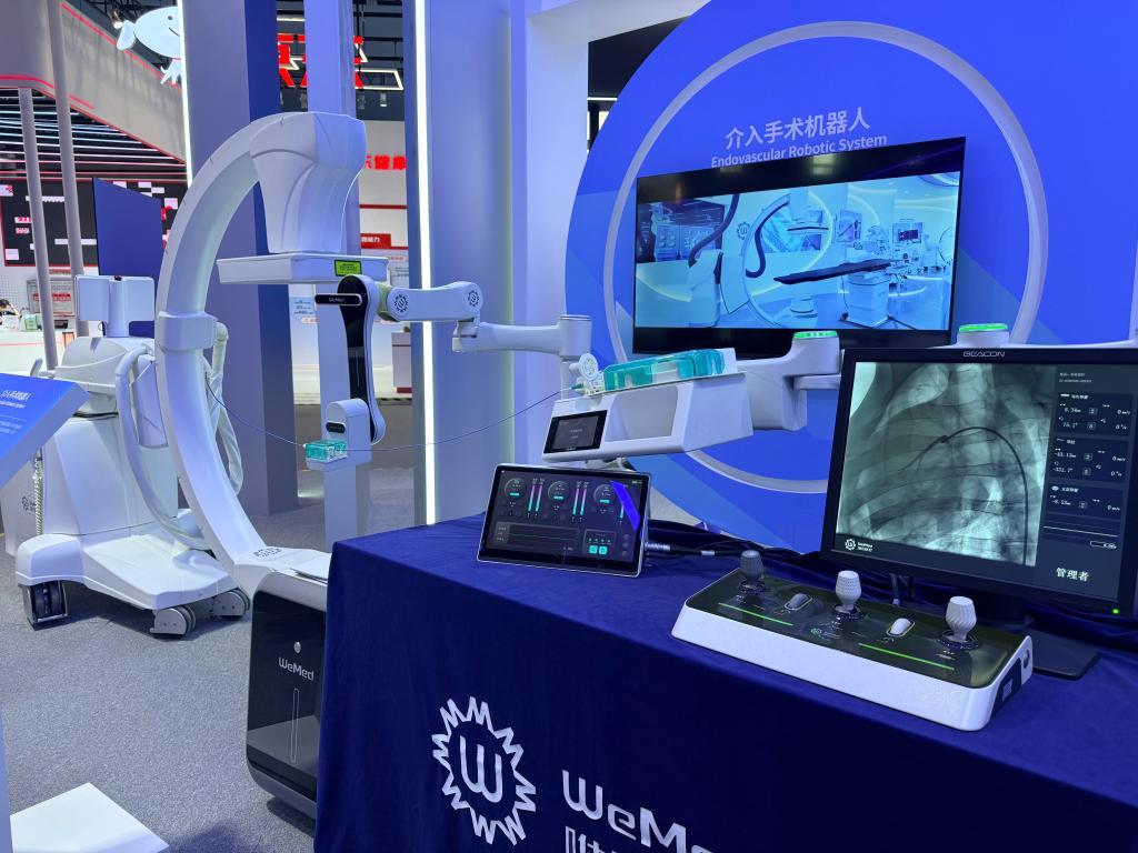 图为会场展出的国产自研冠脉介入手术机器人。新华社记者 侠克 摄