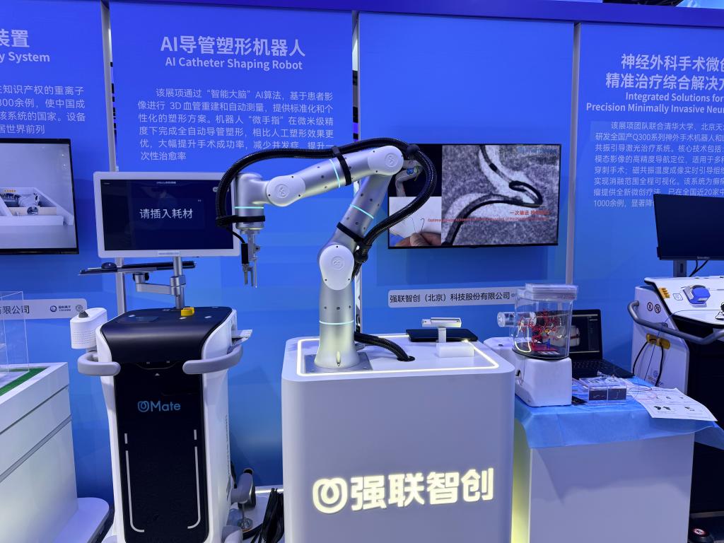 图为会场展出的一款AI导管塑形机器人。新华社记者 侠克 摄