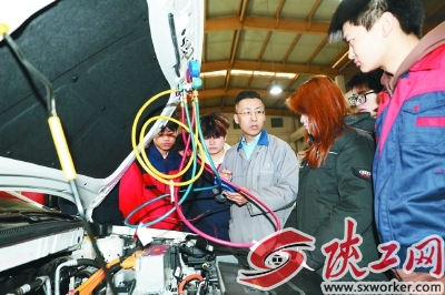 在学院汽车实训中心,郭晓阳结合自己在一线积累的案例,向学生讲解汽车制动液、冷却液的检测方法,课堂的另一侧,学院教师马兰则负责引导学生梳理操作流程,帮助学生将实践经验与理论知识进行系统整合。