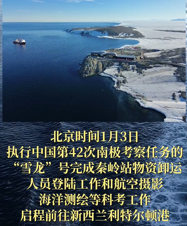 近日,执行中国第42次南极考察任务的“雪龙”号完成秦岭站物资卸运、人员登陆工作和航空摄影、海洋测绘等科考工作,启程前往新西兰利特尔顿港。