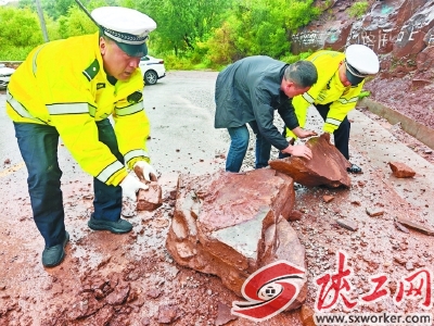 10月6日,白水县公安局交通管理大队城区二中队民警将落石移开,消除交通安全隐患,有效保障了道路交通安全畅通。