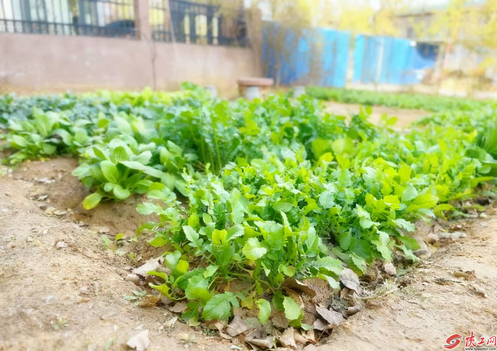 项目部利用闲置空地打造的“共享菜园”。