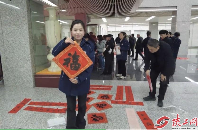 延长油田公司党委委员、工会主席寇明灵来到现场,为职工们送上喜庆的“福”字。大厅里红围巾映衬着红春联,墨香阵阵飘散,处处洋溢着红火的年味儿。职工们手捧墨迹未干的对联,有的轻轻呵气,有的小心用纸巾吸附湿墨,喜悦的神情洋溢在每个人脸上。短短一上午,千余副手写和成品春联带着真挚祝福,被一一送到了职工手中,“万福迎春”活动为即将到来的春节增添了浓浓的年味。(杜培华 姚博 )