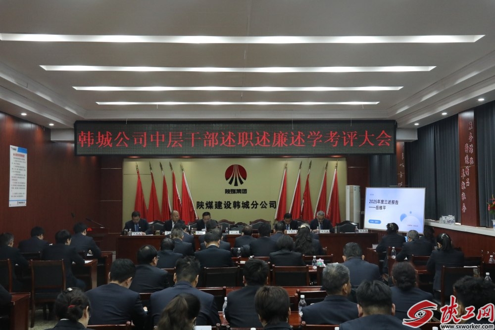 陕工网讯(时婷婷 孙莹) 近日,陕煤建设韩城分公司组织召开2025年度党支部书记(副书记)抓党建工作述职评议考核会及中层干部述职述廉述学考评大会,以现场述职+书面述职、现场测评+综合研判的多元考评方式,全面盘点工作、深刻查摆问题、精准谋划思路,为公司高质量发展凝聚党建合力、锻造过硬干部队伍。