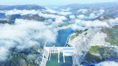 引汉济渭黄金峡水利枢纽鸟瞰(受访单位供图)。 陕工网—陕西工人报讯(全媒体记者薛生贵)3月25日,记者从省引汉济渭工程建设有限公司获悉,截至3月22日,引汉济渭子午水电站、黄金峡水电站一季度发电量突破