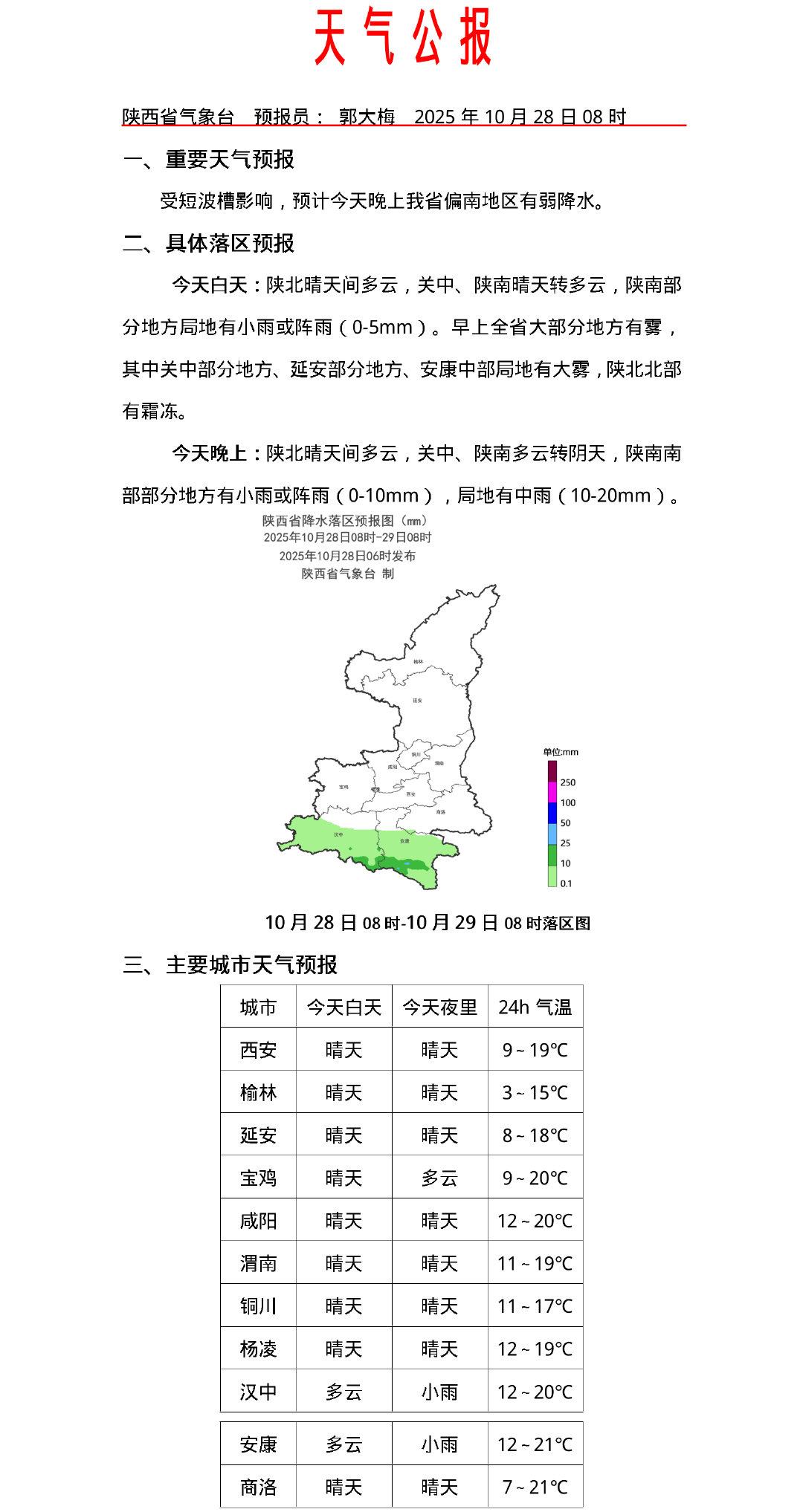 受短波槽影响,预计今天晚上我省偏南地区有弱降水。