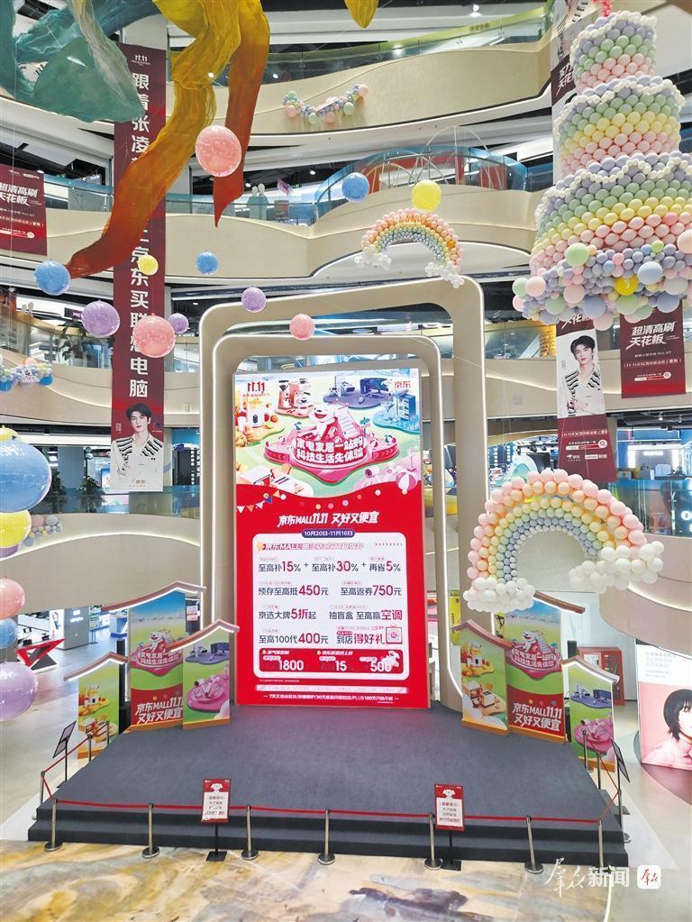 11月4日,在西安曲江京东MALL,“双11”相关布置随处可见。 本版照片均由群众新闻记者 刘芊羽摄