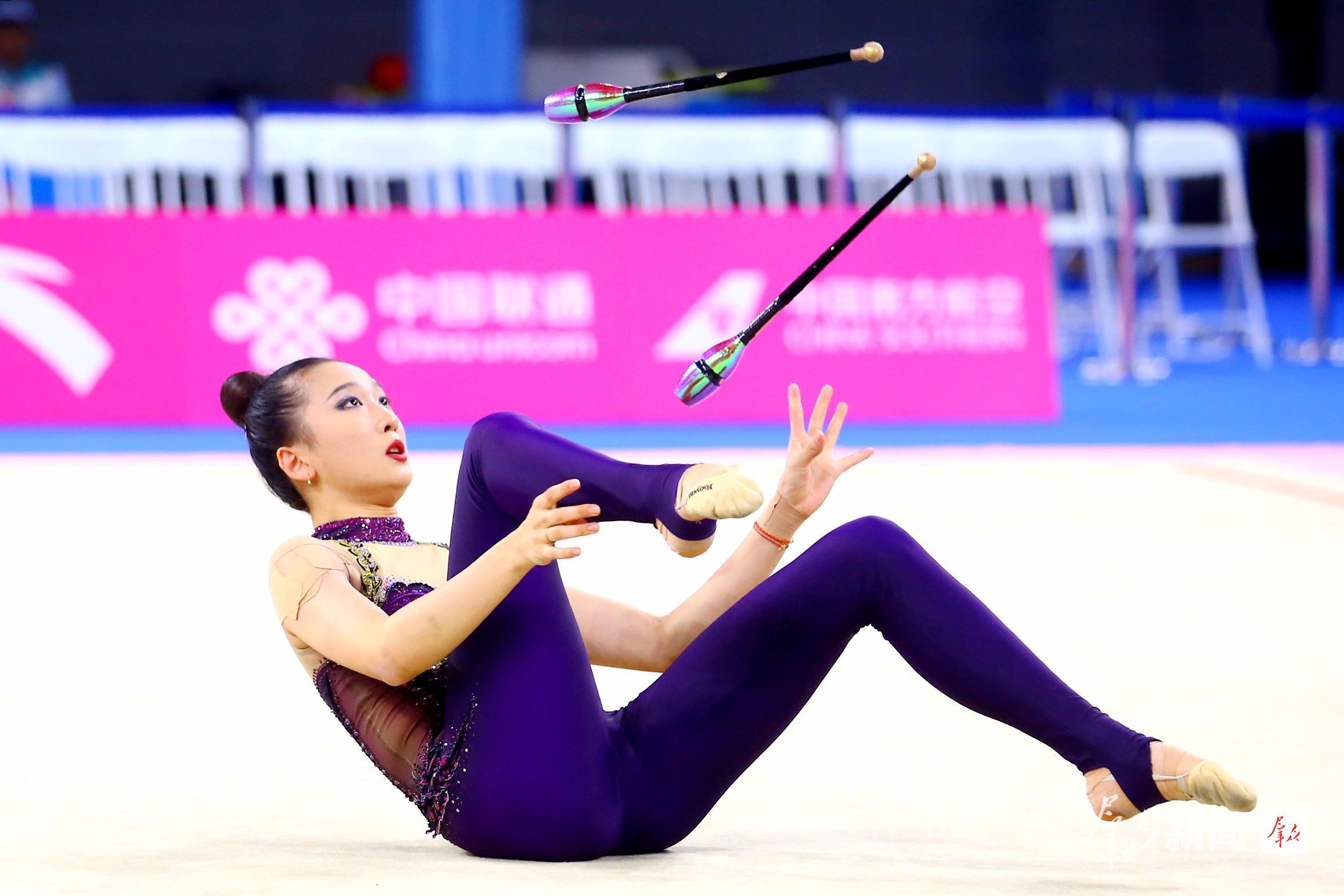 11月10日,第十五届全国运动会(以下简称“十五运会”)艺术体操个人全能项目决赛在深圳市坪山体育中心体育馆举行。陕西运动员王子露以总成绩199.75分获得该项目冠军。