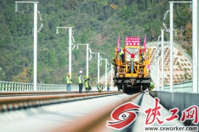 11月27日,在湖北十堰神定河特大桥上,西安至十堰高速铁路(简称西十高铁)全线最后一对长钢轨铺设落地,标志着西十高铁全线铺轨工程顺利完工,为后续联调联试奠定基础。