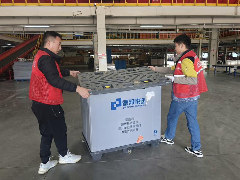 “这是我们定制的一立方米围板箱,顶盖与底托以HDPE为材质,围板为PP蜂窝板,顶部承重可达300公斤以上。围板箱循环使用总次数不低于150次。”德邦快递西北区域公共事务负责人雷书元介绍,围板箱不仅可单独更换受损、变形的配件,降低循环使用成本;回收时,它还能快速折叠,体积仅为原始状态的四分之一,大幅降低了仓储和返程运输成本。