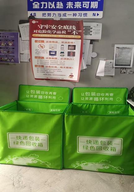 引导快递网点与末端驿站设立的“绿色回收箱”。